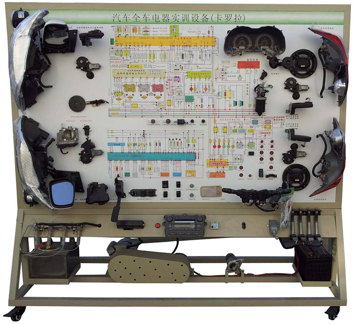 汽車電氣設(shè)備實訓(xùn)室。汽車電器設(shè)備實訓(xùn)室包含有汽車燈光系統(tǒng)、車載網(wǎng)絡(luò)系統(tǒng)、全車電器系統(tǒng)、汽車啟動系統(tǒng)、汽車空調(diào)系統(tǒng)、全車線路試驗臺、等實訓(xùn)教學(xué)設(shè)備。該實訓(xùn)室可以承擔(dān)《汽車構(gòu)造》、《汽車電器設(shè)備》、《汽車電控系統(tǒng)》、《汽車檢測與診斷》等課程的實踐教學(xué)任務(wù)?梢杂糜谘芯俊⒎治鋈囯娖飨到y(tǒng)、燈光系統(tǒng)、儀表系統(tǒng)等電器設(shè)備的電路及功能。利用這些系統(tǒng)進(jìn)行實踐教學(xué),使學(xué)生熟悉汽車電器的結(jié)構(gòu)和工作原理,掌握各個系統(tǒng)的基本組成電路,掌握主要電路的檢測方法和系統(tǒng)的故障特征,從而具有一定的檢測和調(diào)校能力。