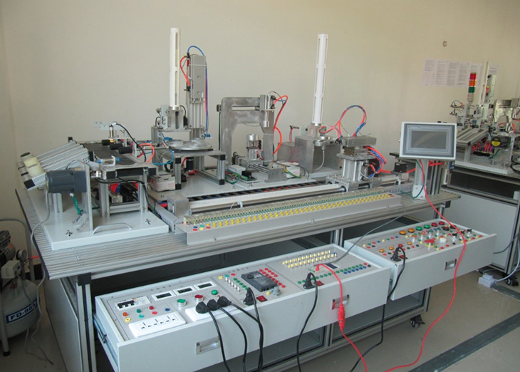 自動(dòng)生產(chǎn)線實(shí)訓(xùn)裝置由由鋁合金導(dǎo)軌式實(shí)訓(xùn)臺(tái)、典型的機(jī)電一體化設(shè)備的機(jī)械部件、PLC模塊、變頻器模塊、按鈕模塊、電源模塊、模擬生產(chǎn)設(shè)備實(shí)訓(xùn)模塊、接線端子排和各種傳感器、計(jì)算機(jī)等組成。整體結(jié)構(gòu)采用開放式和拆裝式,實(shí)訓(xùn)裝置用于機(jī)械部件組裝,可根據(jù)現(xiàn)有的機(jī)械部件組裝生產(chǎn)設(shè)備,也可添加機(jī)械部件組裝其他生產(chǎn)設(shè)備,使整個(gè)裝置能夠靈活的按教學(xué)或競(jìng)賽要求組裝具有生產(chǎn)功能的機(jī)電一體化設(shè)備。模塊采用標(biāo)準(zhǔn)結(jié)構(gòu)和抽屜式模塊放置架,互換性強(qiáng);按具有生產(chǎn)性功能和整合學(xué)習(xí)功能的原則確定模塊內(nèi)容,使教學(xué)或競(jìng)賽時(shí)可方便的選擇需要的模塊。設(shè)備需完全符合電工電子全國(guó)職業(yè)技能大賽所要求,同時(shí)還要求具有可拓展功能,可以組成更加大型的生產(chǎn)模擬系統(tǒng),以配合各個(gè)用戶學(xué)校不同層次,不同專業(yè)的教學(xué)及培訓(xùn)要求。
