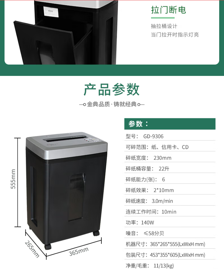 金典 GOLDEN GD-9306 碎紙機(jī) 商務(wù)粉碎機(jī)