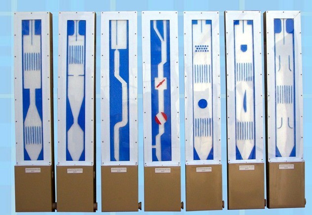 六、機翼:顯示水流在機翼前端駐點即尾端的匯流和兩側(cè)流線疏密分布狀況。