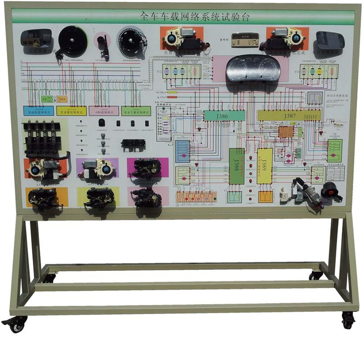 2.示教板面板采用耐撞擊、耐污染、防火、防潮的高級鋁塑板,表面經(jīng)特殊工藝噴涂底漆處理;面板打印有永不褪色的彩色電路圖;學(xué)員可直觀對照電路圖和實物,認(rèn)識和分析車載網(wǎng)絡(luò)系統(tǒng)的工作原理。