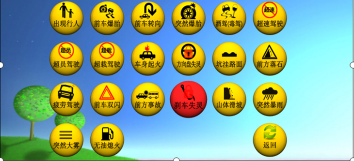 (2)雨天駕駛:突出道路濕滑、積水時的安全駕駛操作方法、防范汽車側滑、甩尾的駕駛規(guī)范,真實模擬雨點與玻璃的碰撞、視線的漸變、雨刮刮過的效果、車外后視鏡的模糊等,雨刮器的使用;霧天駕駛:突出視線不好,近光燈的使用、喇叭的使用及霧天安全駕駛要領;