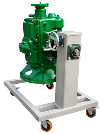 采用減速翻轉(zhuǎn)機(jī)構(gòu),可使變速器旋轉(zhuǎn)任意角度,并能任意位置鎖止,便于學(xué)生從不同的角度進(jìn)行拆卸和裝配。