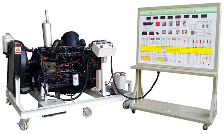 CA1125柴油發(fā)動(dòng)機(jī)總成、組合儀表、發(fā)動(dòng)機(jī)控制單元、散熱系統(tǒng)(水箱、風(fēng)扇、上下水管)、排氣系統(tǒng)、進(jìn)氣系統(tǒng)(進(jìn)氣軟管、空氣濾清器總成)、原車電路原理圖板及檢測端子面板、蓄電池、電源總開關(guān)、燃油箱、油水分離器、油門踏板裝置、可移動(dòng)機(jī)臺(tái)架、臺(tái)架高溫及轉(zhuǎn)動(dòng)等部位加裝防護(hù)裝置等。