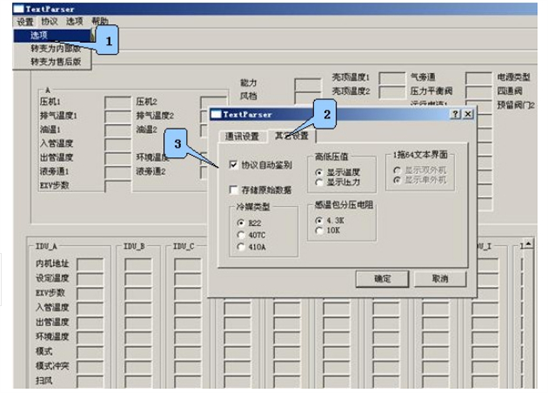 文本顯示界面:可測試壓縮機(jī)的運(yùn)轉(zhuǎn)頻率,傳感器的各種數(shù)據(jù),電子膨脹閥的工作步數(shù)等幾十種中央空調(diào)的工作數(shù)據(jù)和狀態(tài),