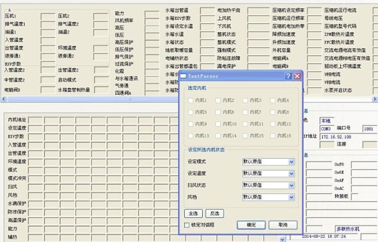 軟件可實現(xiàn)對內(nèi)機(jī)的控制,,可以對1-64臺內(nèi)機(jī)的狀態(tài)進(jìn)行設(shè)定。