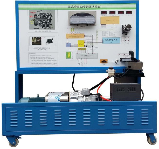 該設備采用翻新邁騰B8L 2021款電控雙離合器自動變速器總成為基礎,可調速三相異步電動機做動力源,對雙離合器自動變速器進行檔位顯示、空檔起動、前進檔及倒檔運行等工況實踐操作。真實展示電控雙離合器自動變速器組成結構和工作過程。