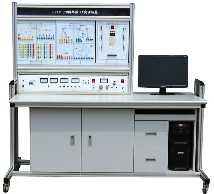 SBPLC-02D網(wǎng)絡(luò)型PLC實(shí)訓(xùn)裝置,PLC控制+變頻+觸摸屏+步進(jìn)+伺服