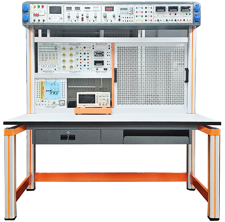 網孔型電工·電子·電拖綜合實訓考核裝置主要由實訓桌、主機箱、外接儀器工作電源箱、實訓掛箱、網孔板、實訓元器件組成。學生根據實訓線路進行元器件的合理布局,安裝、接線全部由學生自行完成,接近工業(yè)現場,能完成電工電子基礎電路,電機控制線路,照明配電的模擬操作,增加實訓器材可完成PLC可編程綜合應用線路等。通過一系列項目實訓培養(yǎng)學生動手能力和實操技能。實訓項目可自行確定,根據所選的項目選擇相應的元器件。該裝置也可作為電工考工的考核設備。