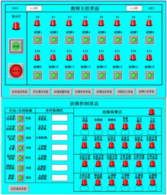 2.電氣控制采用西門子PLC系統(tǒng),驅(qū)動采用變頻節(jié)能控制;智能故障考核系統(tǒng)采用10寸真彩觸摸屏。系統(tǒng)有教師登陸和學生登陸功能,16個故障設計功能,定時排故,考題計分功能,扶梯模型配套有電氣故障點設置,學生可以通過故障現(xiàn)象在裝置上檢測、查找故障點,并將其修復。通過在該實訓裝置上的實訓訓練,使學生能夠真正學習和掌握自動扶梯的安裝維修保養(yǎng)技術(shù)及技能。具備故障反饋、故障代碼查詢。