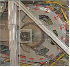 由扶手齒輪、扶手摩擦輪、張緊輪、托輥輪、壓輥輪、托帶鏈、回轉(zhuǎn)鏈行扶手導軌組成扶手帶動力系統(tǒng)。