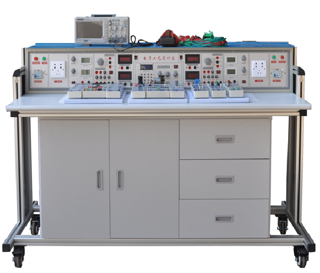 電工電子實驗臺,電工電子實訓(xùn)臺,電工電子實訓(xùn)設(shè)備,教學(xué)用電工實驗平臺 培訓(xùn)用電工電子實訓(xùn)臺,電工電子技術(shù)主要介紹電路的基本概念、基本定律及分析方法; 電路的暫態(tài)分析; 單相正弦交流電路; 三相電路; 半導(dǎo)體基礎(chǔ)知識; 晶體管及基本放大電路; 集成運算放大器及應(yīng)用; 數(shù)字邏輯電路基礎(chǔ); 邏輯代數(shù)與邏輯函數(shù); 組合邏輯電路以及時序邏輯電路。用途: 適用大中專院校“電工基礎(chǔ)”、“電工學(xué)”、“數(shù)電”、“模電”、“電機(jī)學(xué)”、 “電機(jī)與電力拖動”、“電氣控制”、“繼電接觸控制”等課程的實驗教學(xué)。并可擴(kuò)展“可 編程控制器”及“電機(jī)變頻控制”等實驗內(nèi)容。,職業(yè)教育和就業(yè)人員實際操作、培訓(xùn)、鑒定的需求,我公司綜合了大中專院校、職業(yè)院校、技工學(xué)校的《電工技能訓(xùn)練》《電工實訓(xùn)》《電氣控制技術(shù)》《電力拖動控制線路與技能訓(xùn)練》等相關(guān)科目的實驗及實訓(xùn)教學(xué)內(nèi)容而研發(fā)了本裝置。裝置采用網(wǎng)孔板結(jié)構(gòu),訓(xùn)練與鑒定接近工業(yè)現(xiàn)場,外形美觀,結(jié)構(gòu)合理,牢固、耐用,實訓(xùn)方式靈活,增加元器件即可增加實訓(xùn)項目,可擴(kuò)展性強(qiáng),裝置設(shè)置多重科學(xué)安全保護(hù)措施,確保設(shè)備和使用者人身安全,非常適合各大中專、職業(yè)學(xué)院、技工學(xué)校和各類培訓(xùn)機(jī)構(gòu)訓(xùn)練學(xué)生電工基本技能、專業(yè)技能和綜合技能,也可進(jìn)行電工等級考核和技能鑒定,可達(dá)到勞動和社會保險職業(yè)技能鑒定中級以上水平。